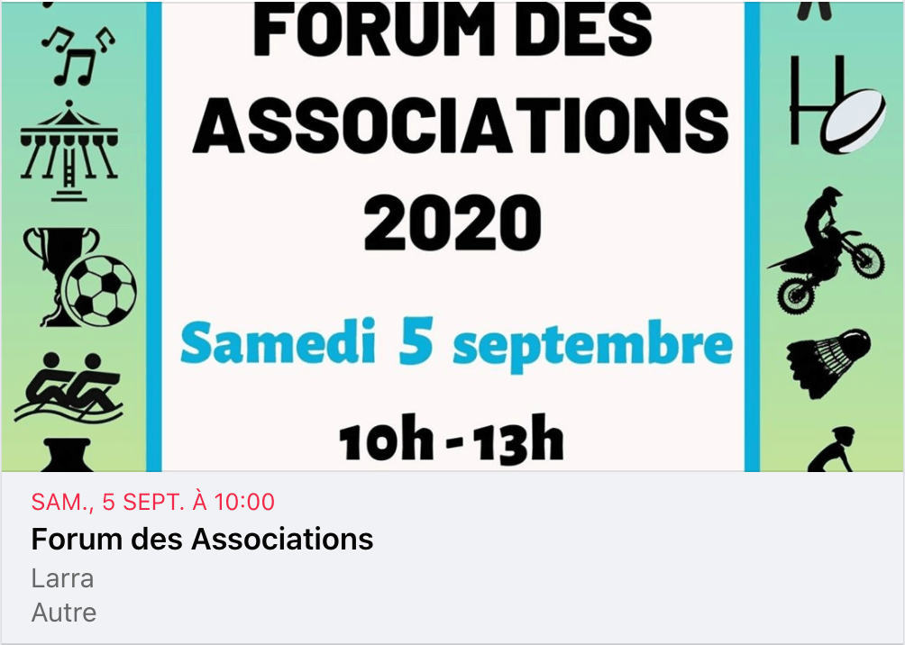 Venez nous rejoindre le samedi 5 septembre à partir de 10h pour nous rencontrer et peut-être adhérer à l’APE Larra!!! Mais aussi, rencontrer d’autres associations présentes sur notre village.