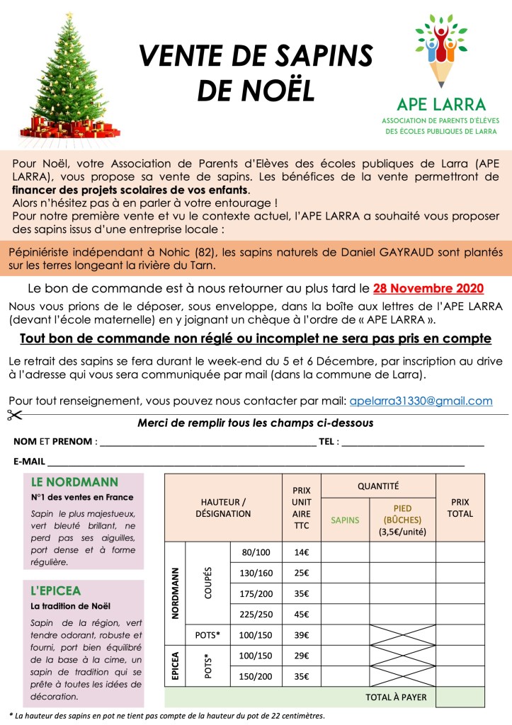 👉 Retrait des commandes des sapins de Noël par inscription en drive sur Larra le week-end du 5 et 6 décembre