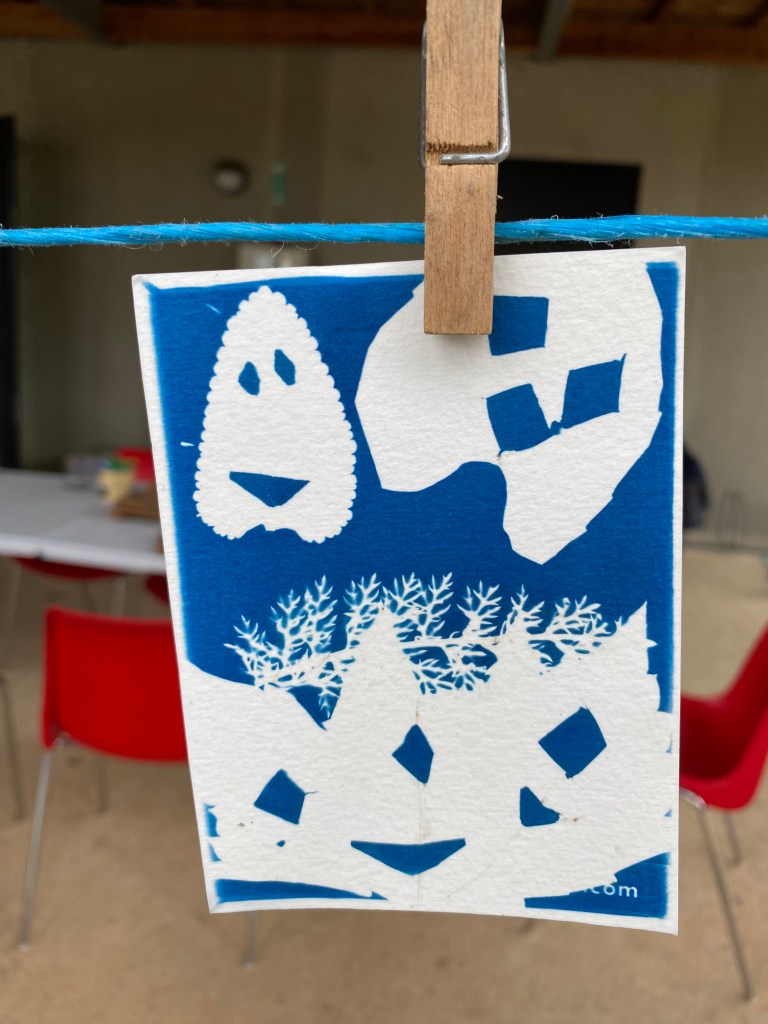 Organisé par l’APE LARRA et en partenariat avec l’association » L’art en Village » et « Oeil de Pierre », cet atelier a pour but de créer des photogrammes (procédé photographique Cyanotype) à partir de végétaux prélevé dans la forêt.