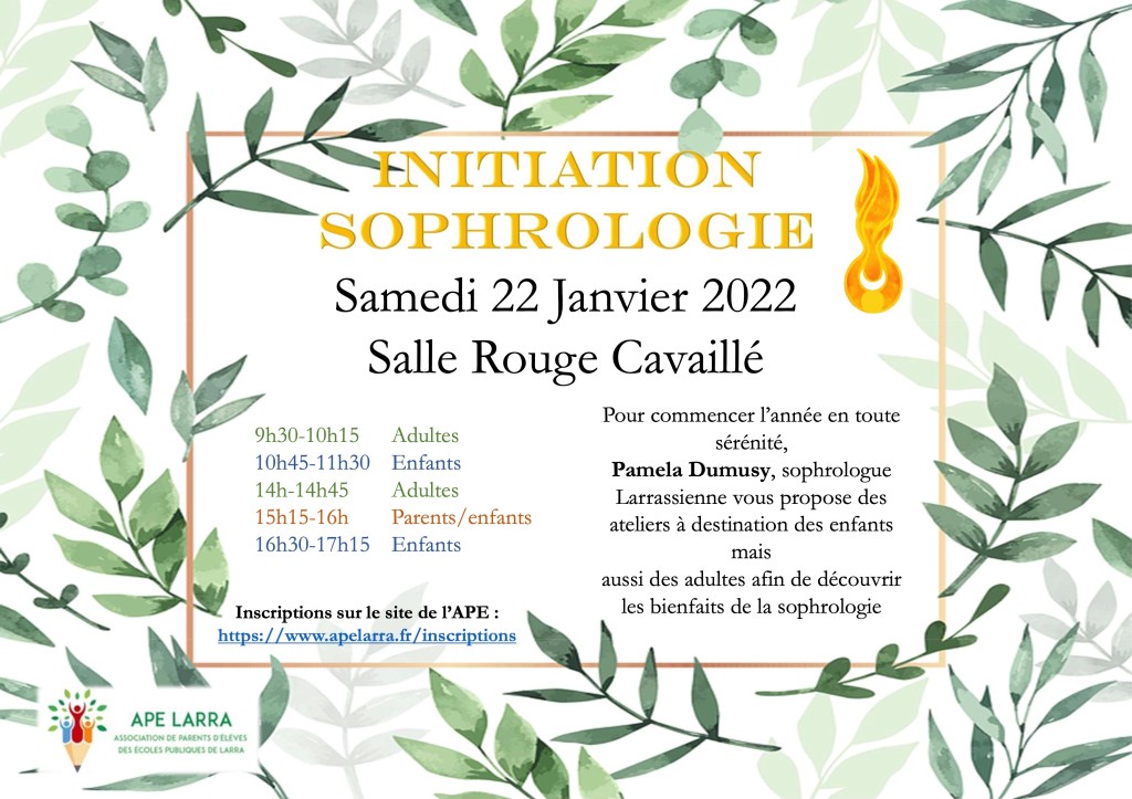 Pour bien commencer l’année, Paméla DUMUSY, Sophrologue à Larra, vous propose des ateliers d’initiation à la sophrologie.