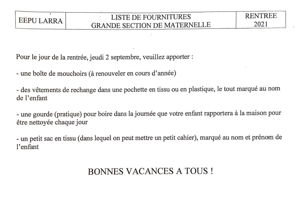 Toujours pour vous aider, l’APE Larra vous met à disposition les listes scolaires CP CE et CM ici par classe pour l’école élémentaire ![]()