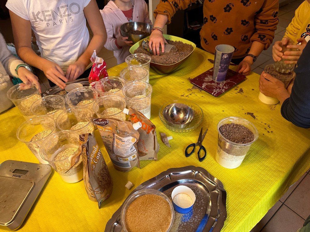 Comme tous les ans, depuis maintenant 3 ans, les bénévoles de L’APE LARRA confectionnent des Kits cookies pour les ventes de fin d’année. Une recette délicieuse, un packaging pratique, permettant de réaliser une activité culinaire, même avec des tout petits.