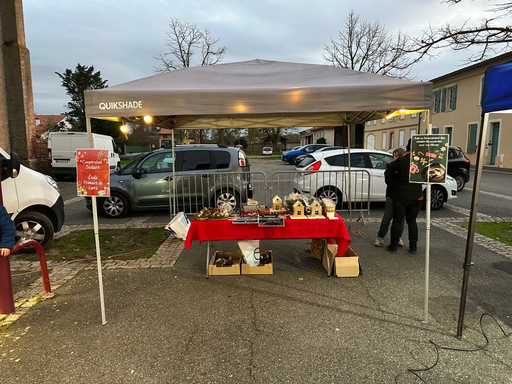 Comme l’année, les bénévoles de l’APE LARRA se sont mobilisés pour aider les écoles. Cette année, ce n’est pas une classe qui part en voyage scolaire, mais quatre. Nous avons donc aidé les maîtresses à vendre les objets confectionnés par élèves, sur les marché de pleins vent de LARRA le mardi soir. Le message est passé et nous avons eu la visite de nombreux habitants pour venir soutenir le projet de voyage scolaire. Merci à eux pour leur générosité.