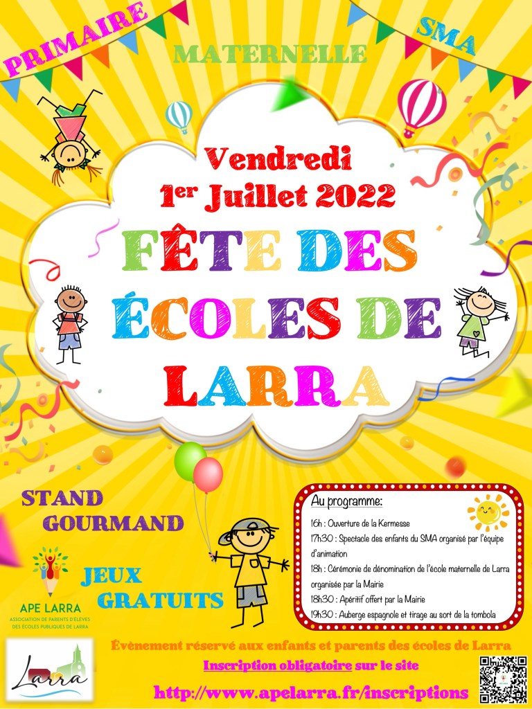 Vendredi 1er juillet, à partir de 16h, c’est la Fête des écoles de Larra !